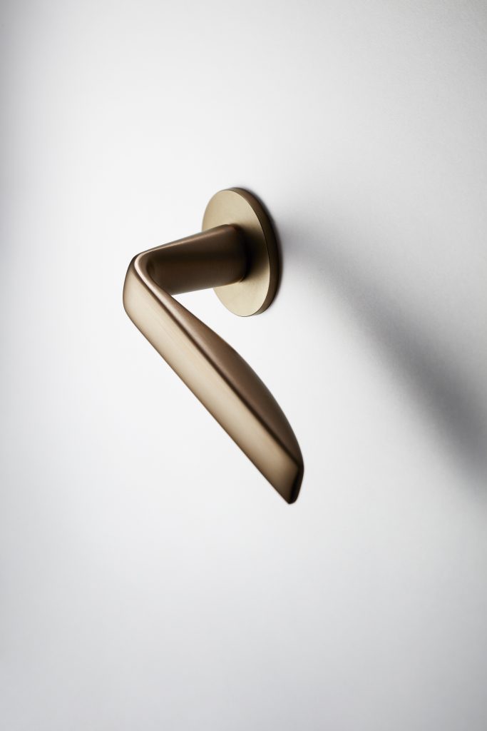 Eine Türklinke, die aus der Verschmelzung grundlegender ergonomischer Aspekte mit der Nüchternheit der visuellen Wirkung entsteht: Viva! weist je nach Blickpunkt ein unterschiedliches Erscheinungsbild mit linearen oder weichen und gewundenen Formen auf, die sie charakterisieren.