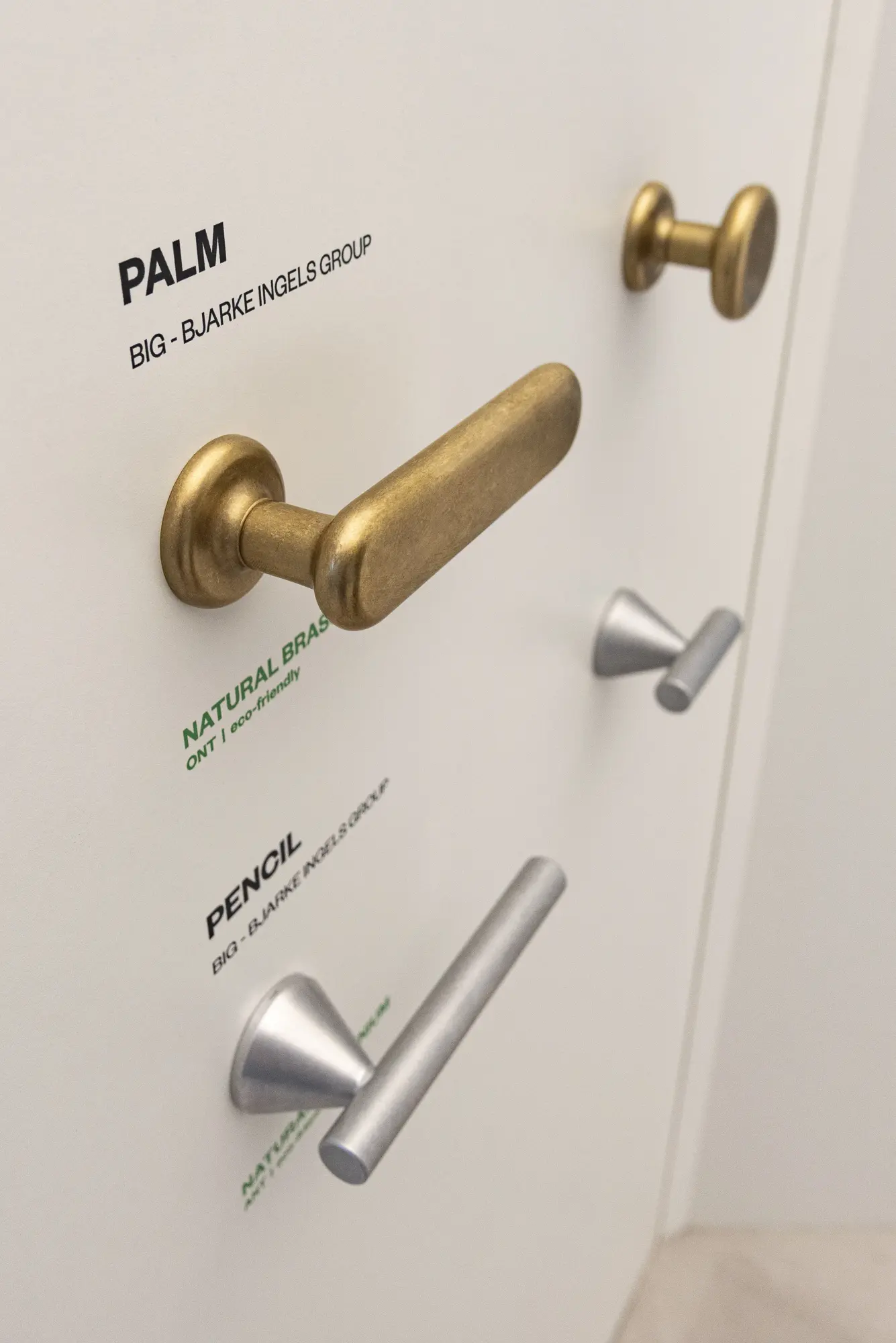 Presenti e apprezzate anche le collezioni recentemente aggiunte al catalogo, come le maniglie Palm e Pencil di BIG – Bjarke Ingels Group e le finiture naturali ONT (ottone) e ANT (alluminio).