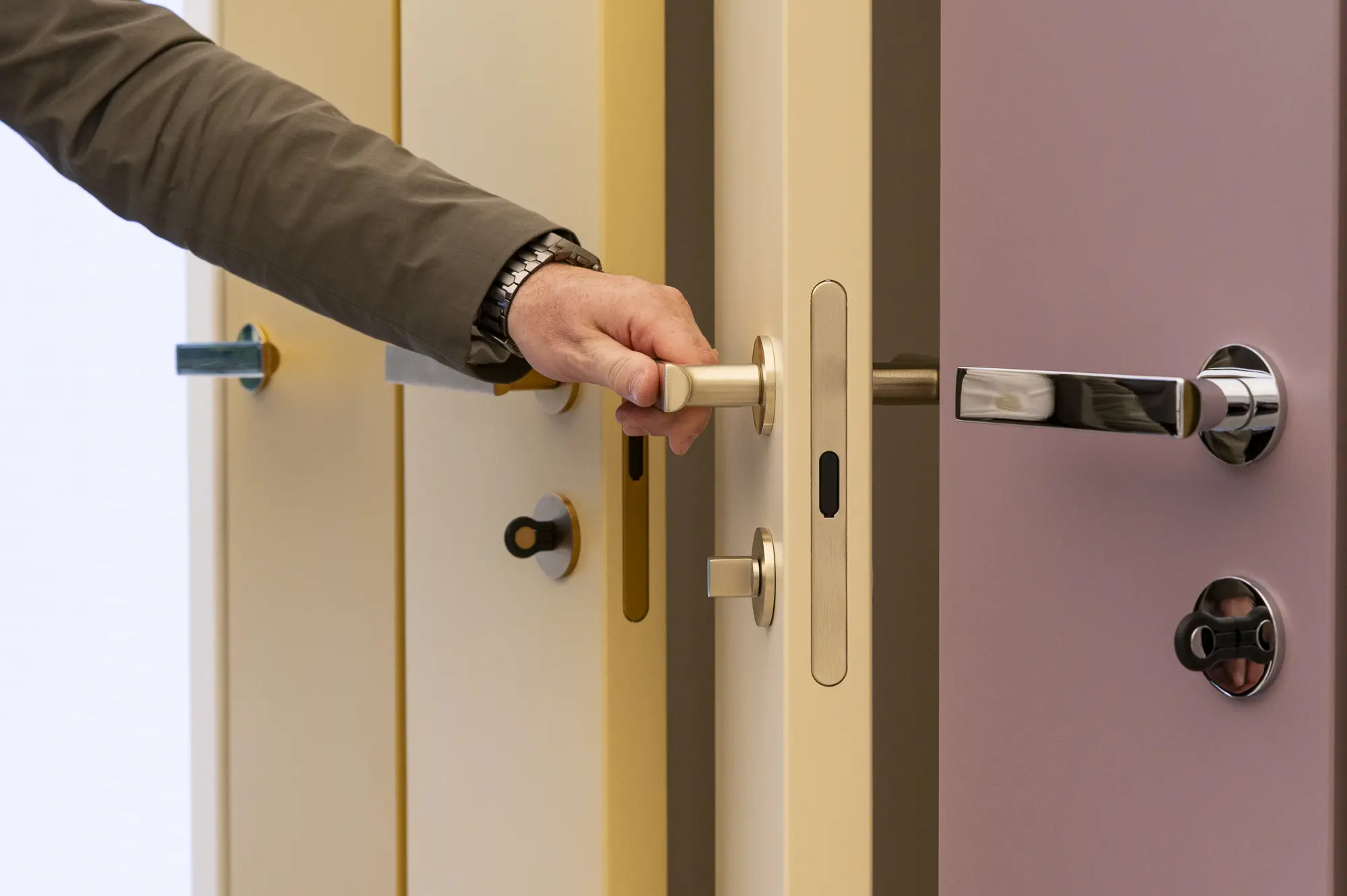 Particolare attenzione ha suscitato il Total Look, l’approccio progettuale che integra maniglia e serratura in modo coordinato, quest’anno arricchito dal sistema di chiusura per porte scorrevoli Verso, dalla chiave key plus di Giulio Iacchetti, che si affianca alla soluzione magnetica integrata nel Click & Close.