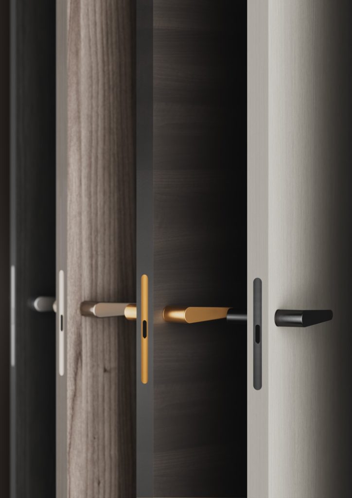 Con Vertical e con le altre serrature magnetiche della gamma, Dnd è in grado di fornire un kit porta completo e coordinato con tutte le sue maniglie di design.